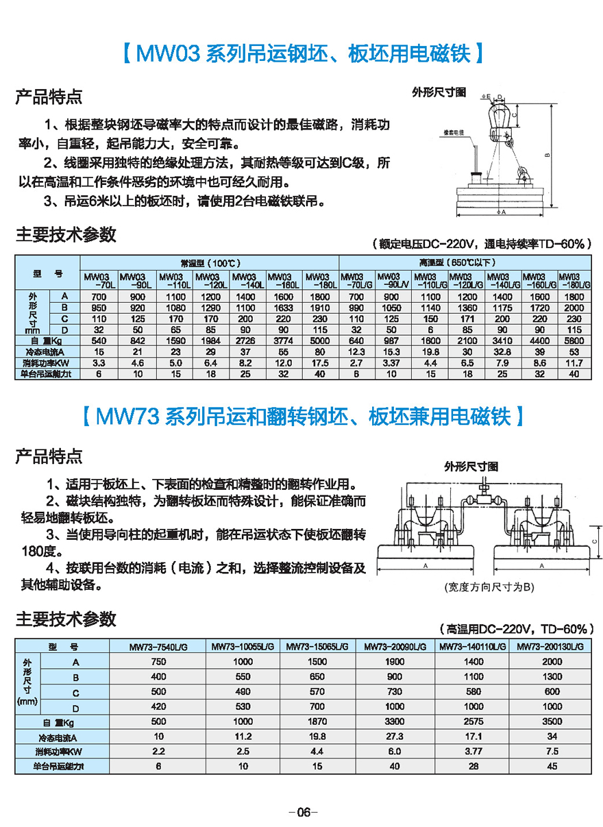 MW73系列吊運(yùn)和翻轉(zhuǎn)鋼坯、板坯兼用電磁鐵